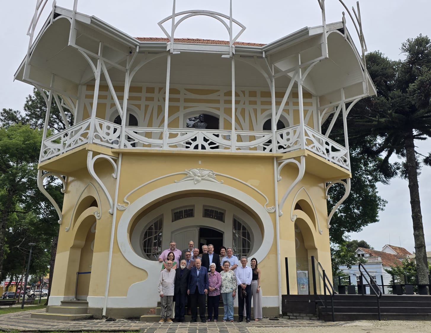 A diretoria eleita em frente ao Belvedere, sede da Academia Paranaense de Letras | Crédito imagem: Angelo Volpato