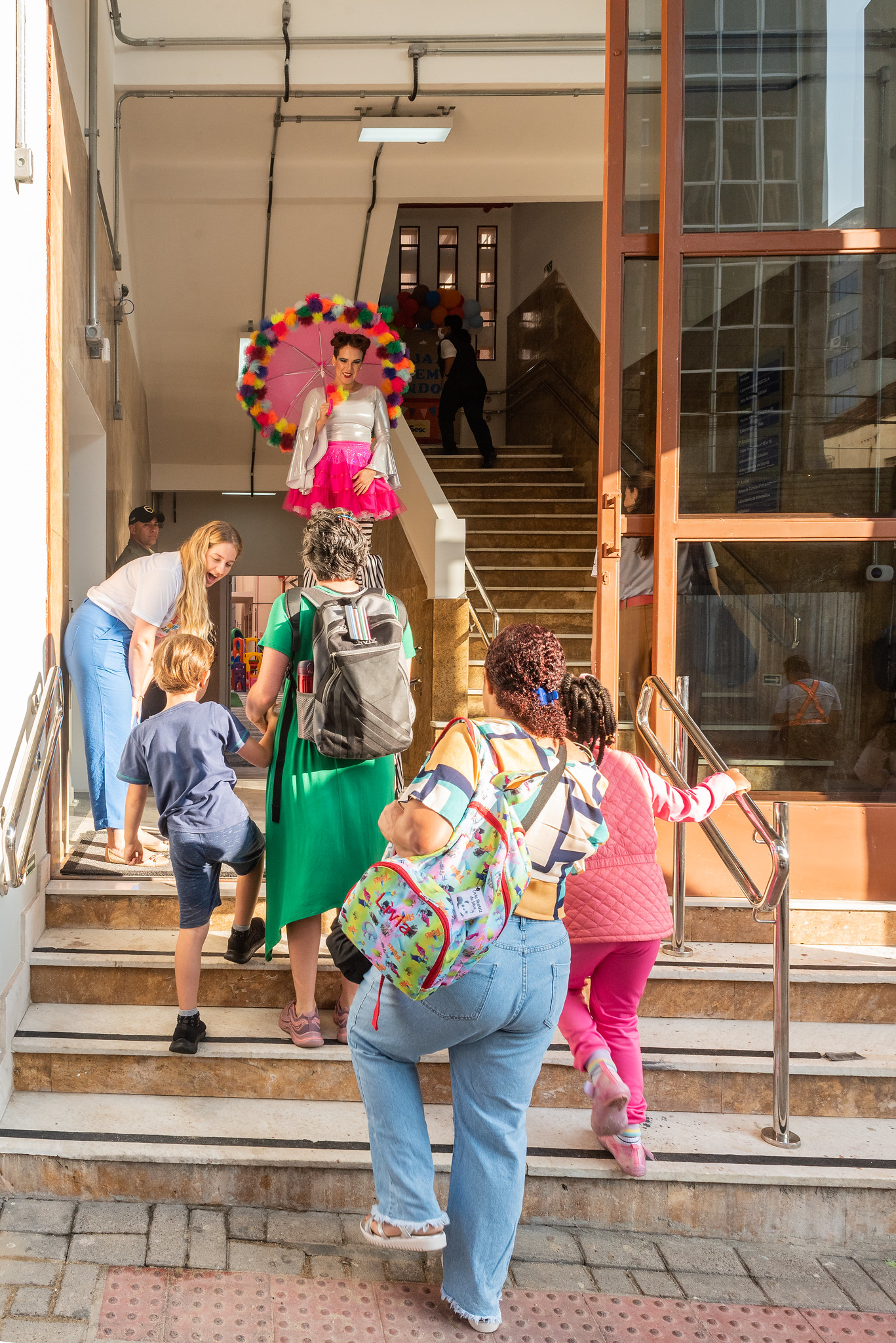 Ontem (6) os estudantes do 1º ao 9º ano do Ensino Fundamental e do 1º ano do Ensino Médio iniciaram o ano letivo no novo colégio do Sesc em Curitiba. A abertura das aulas contou com a participação do Grupo Teatral Estilingue Produções.