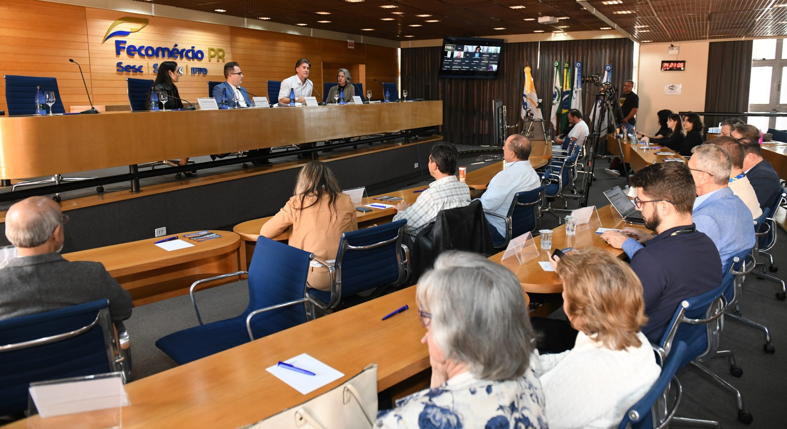 A Fecomércio PR recebeu, nesta quarta-feira (3/9), a reunião ordinária do Conselho Paranaense de Turismo (Cepatur). O encontro, realizado em formato híbrido, contou com a participação do secretário estadual de Turismo e presidente do Cepatur, Leonaldo Paranhos; do coordenador da Câmara de Turismo da Fecomércio PR e vice-presidente do Conselho, Giovanni Bagatini, além de representantes das diversas instituições que integram o colegiado.