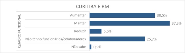 Em Curitiba e Região Metropolitana, 30,5% dos empresários projetam ampliar contratações, o maior percentual do estado. Outros 37,3% pretendem manter o quadro atual, enquanto apenas 5,6% indicam redução de pessoal.