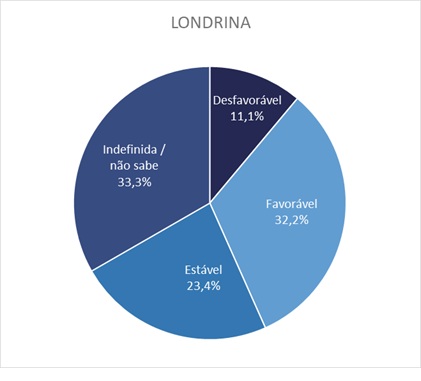 Os empresários de Londrina iniciam o primeiro semestre de 2026 com 32,2% de expectativas favoráveis, segundo a Pesquisa de Opinião do Empresário do Comércio, elaborada pela Fecomércio PR em parceria com o Sebrae/PR. Embora o índice esteja entre os mais elevados do estado e estar acima da média estadual (28,7%), houve recuo frente ao semestre anterior, quando o percentual era de 36,4%.