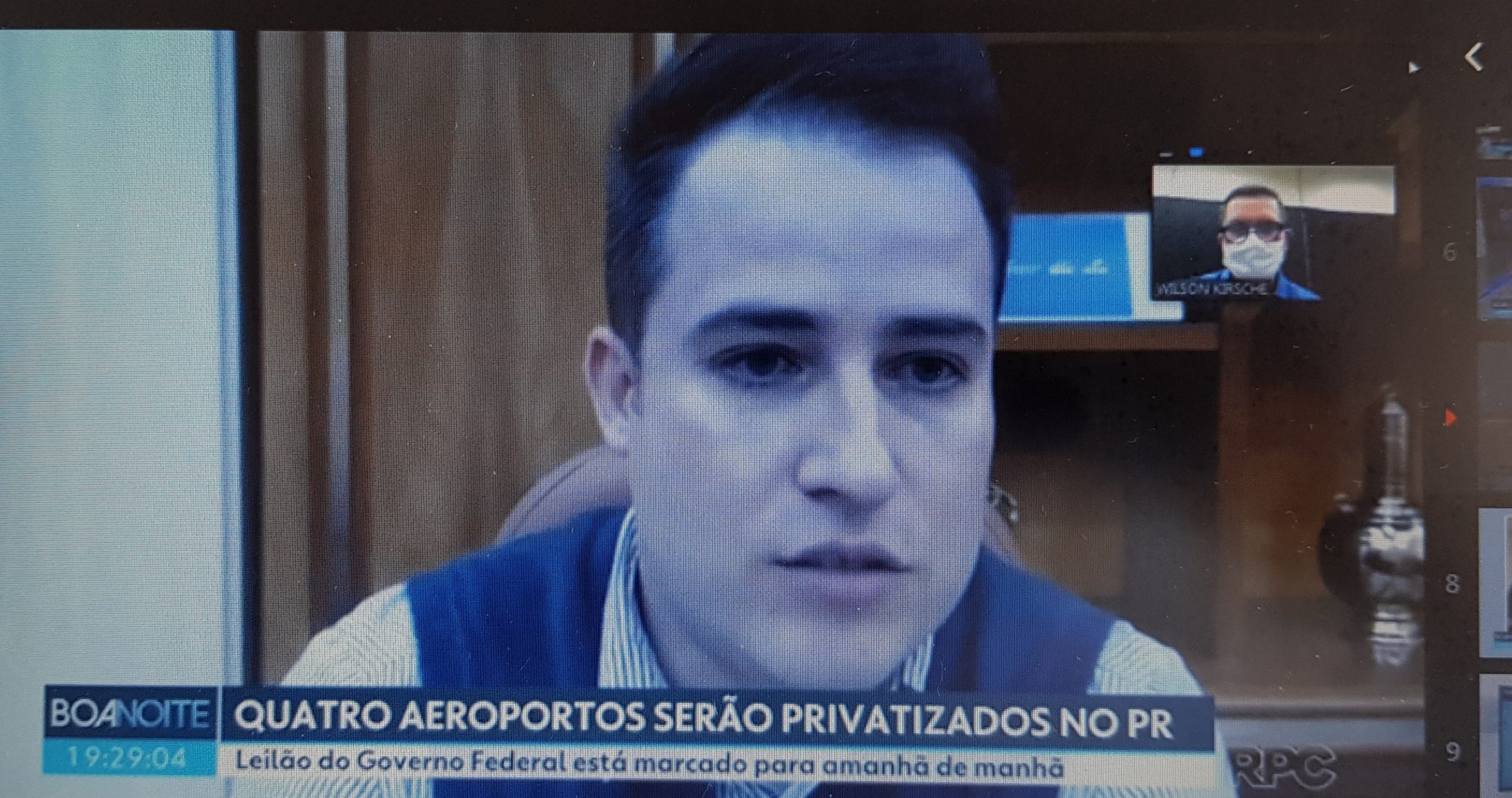 O assessor da presidência da Fecomércio PR e vice-presidente do Conselho Paranaense de Turismo, Giovanni Bagatini, concedeu entrevista ontem à RPC sobre a privatização dos aeroportos no Paraná. O leilão está marcado para hoje (7). Foz do Iguaçu e Curitiba já são grandes polos receptores de Turistas e as concessões também contemplam aumento das pistas para receber voos diretos intercontinentais. Os investimentos trarão mais comodidade, visibilidade, além do aumento do número de turistas internacionais, conforme o assessor. A reportagem completa, veiculada no jornal Boa Noite Paraná, está disponível pelo link